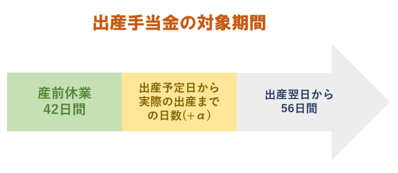 産前の42日間+出産日超過の日数(α)+産後56日間です。